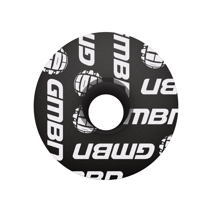 Our custom made aluminium stem cap looks super nice with a repeated GMBN word logo etched into it.