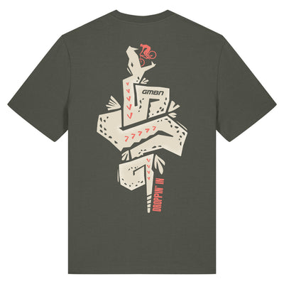 We've all been there—teetering on the edge of a huge drop or about to drop into a Snake Run. Psych yourself up and wear our new T with pride.